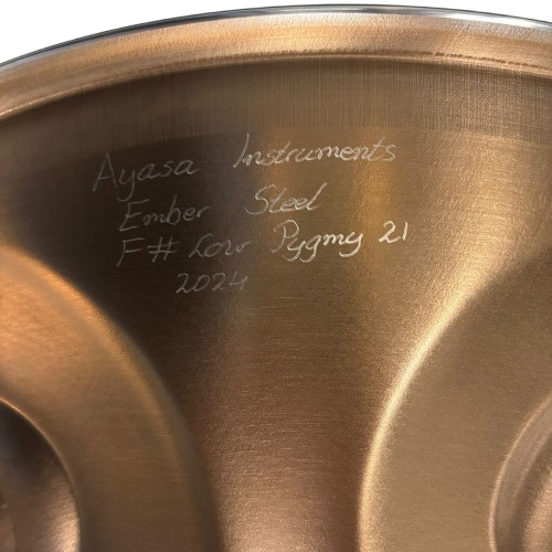 A side note: the patina on most ember steel handpans is not stable and the instruments are likely to change colour. This does not affect the sound or tuning, it just creates a vintage look.
